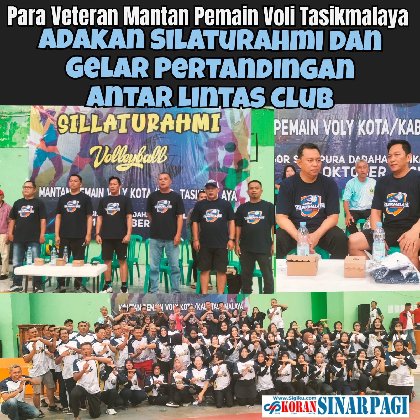 Koran SINAR PAGI, Kota Tasikmalaya,- Para veteran pemain bola voli Tasikmalaya, yang pernah jaya di masanya sekitar tahun 1989 meramaikan ajang pertandingan bola voli putra dan putri dalam rangka reuni akbar alumni pemain bola voli lintas klub Tasikmalaya di GOR Sukapura Dadaha Kota Tasikmalaya, Minggu (12/10/2025) pagi.
