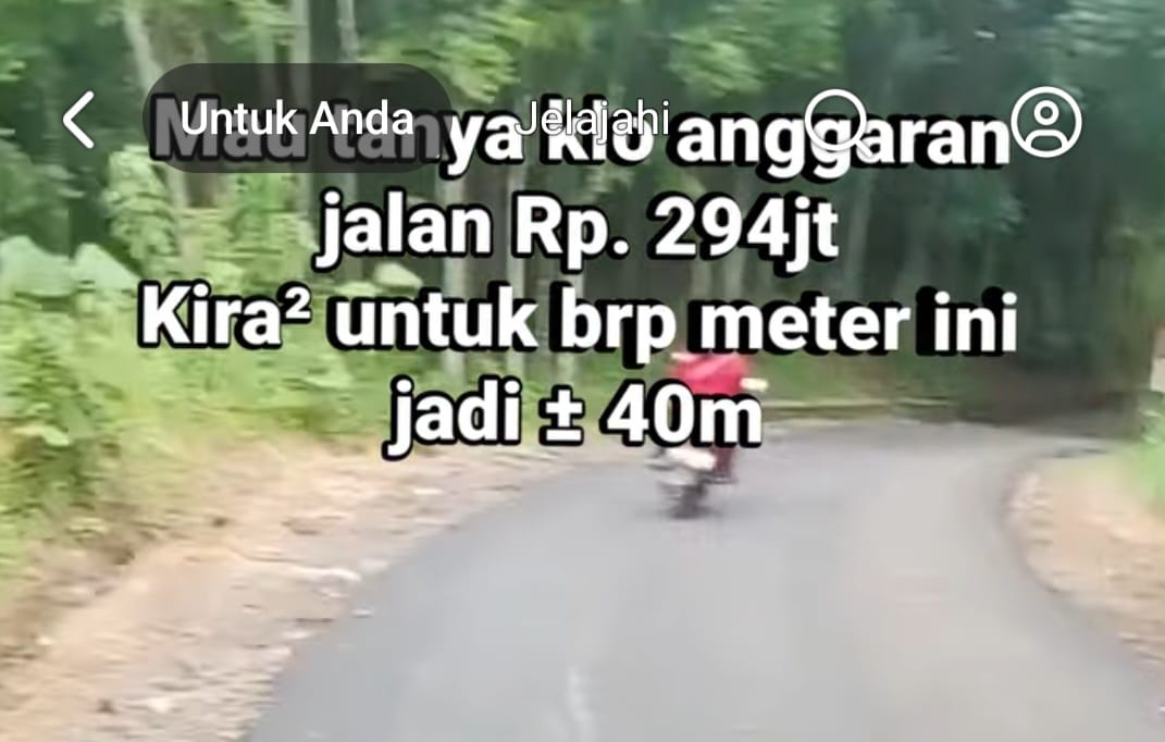 Pasalnya, proyek tersebut dikabarkan menelan anggaran hingga Rp294 juta, namun panjang jalan yang dibangun diduga hanya sekitar 40 meter. Kondisi ini dinilai janggal dan tidak logis oleh masyarakat.