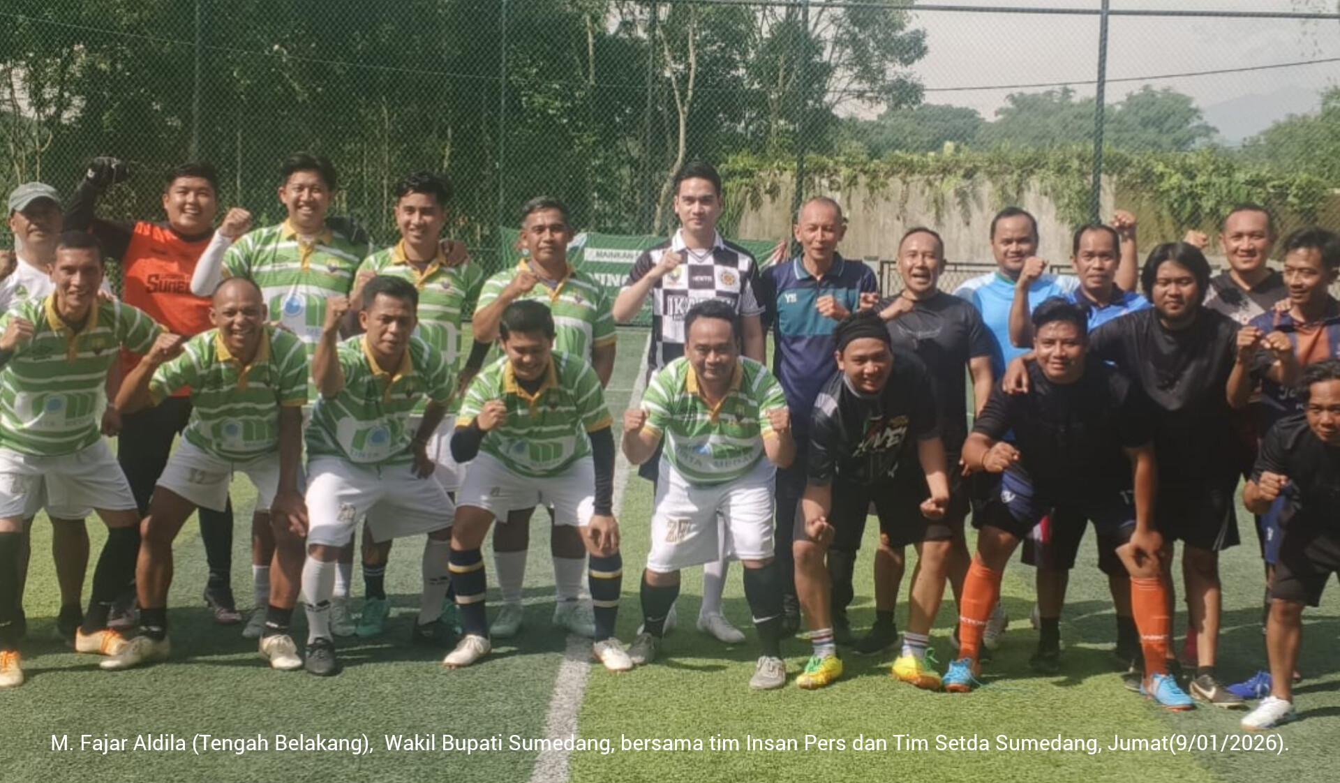 Koran Sinar Pagi, Sumedang,– Wakil Bupati Sumedang, M. Fajar Aldila, turut turun langsung ke lapangan dalam pertandingan sepak bola persahabatan antara tim Insan Pers melawan Sekretariat Daerah (Setda) Kabupaten Sumedang yang digelar di Cikandug Soccer Field, Jumat (9/01/2026).